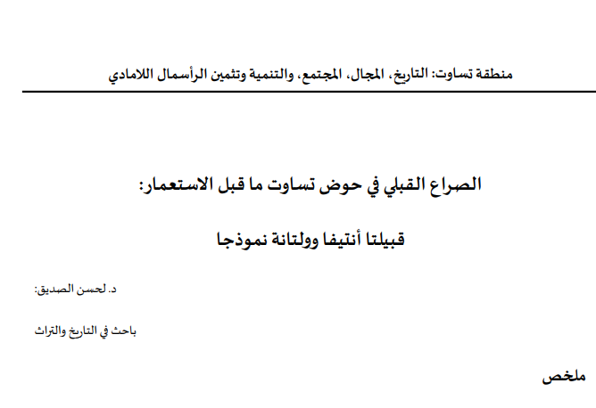 الموضوع الثاني: الحسن الصديق: الصراع القبلي في حوض تساوت ما قبل الاستعمار قبيلتا انتيفا وولتانة نموذج