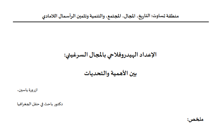 الموضوع السادس: ازرورة ياسين، الإعداد الهيدرو فلاحي ومساهمته في استدامة الإنتاج الفلاحي بالمجال السرغيني